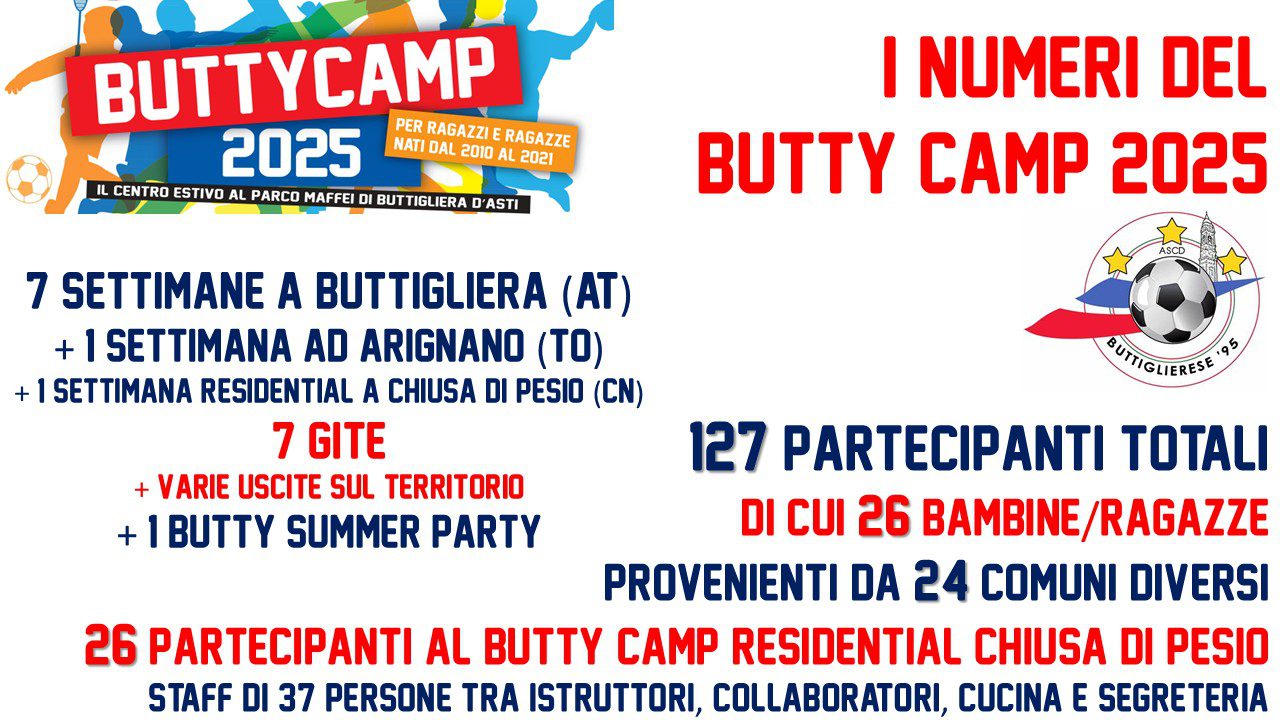 Butty Camp Residential Chiusa di Pesio 2025. Al termine delle attività, i giovani nati tra il 2008 e il 2015 hanno avuto la possibilità di partecipare alla quarta edizione del Butty Camp Residential, che, per il terzo anno consecutivo, ha previsto cinque giorni di soggiorno presso l’Hotel Cannon d’Oro a Chiusa di Pesio, accompagnati da varie attività. I 26 partecipanti hanno preso parte a sessioni di allenamento, partite e tornei di calcio, godendo della piscina nel cortile dell’hotel, sempre accessibile. Inoltre, hanno effettuato due escursioni: una mezza giornata nei dintorni di Chiusa Pesio e una più impegnativa, con partenza dal Pian delle Gorre (1000 m circa), raggiunto grazie a un servizio navetta messo a disposizione dalla Buttiglierese e dall’albergo. Al termine dell’avventura, giovedì sera, era previsto un servizio pullman per il rientro a Buttigliera. Per alcuni partecipanti, è stata la prima esperienza lontano da casa, mentre per altri è stata un’opportunità per socializzare, vivere nuove avventure e sviluppare una maggiore autonomia. Guarda la fotogallery: BUTTY CAMP RESIDENTIAL CHIUSA DI PESIO 2025