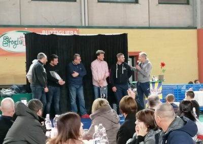 Sabato 21 dicembre 2019 al Palamaffei di Buttigliera d’Asti è stato il momento della Festa di Natale dell’A.s.c.d.B.’95. Nuovo grande record di presenze a testimonianza della costante crescita della società con più di 300 tesserati e simpatizzanti che hanno partecipato. La serata è stata ricca di intrattenimenti di vario genere. Dopo l’aperitivo di benvenuto offerto da Sfoglia Torino si è svolta la cena con vari antipasti e gli agnolotti come piatto principale. Per i più piccoli erano presenti ben due giostre gonfiabili su cui si sono potuti divertire durante tutta la serata mentre sia grandi che piccini sono stati allietati poi dal mago Natalino Contini con il suo spettacolo. Dopo è venuto un momento più “serio” con il saluto al direttivo uscente, guidato dal Presidente Renato Gramaglia e il benvenuto al nuovo direttivo con Enzo Perrino nella carica di Presidente, e gli altri consiglieri Massimiliano Mastinu, Mirko Cericola, Massimo Botte, Andrea Grimaldi, Marco Tamagnone e Pier Paolo Tamagnone. Gramaglia nel salutare, garantendo comunque il suo supporto alla nostra società, ha voluto citare e premiare con un pensierino tutte le persone che hanno collaborato con lui in questi otto anni di presidenza.